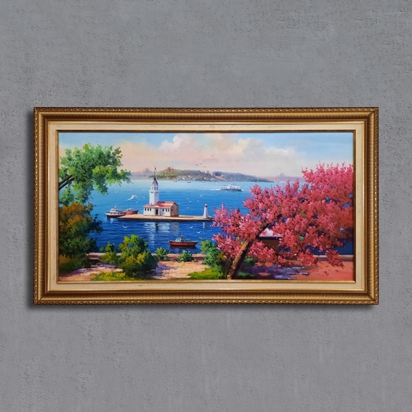 Sanatçı Faysal ÇAKMAZ. Tuval üzeine orijinal yağlıboya tablo. Tuval Ölçüsü 60×150 cm. Çerçeveli 75×165 cm. İstenilirse çerçeve değişmeye müsaittir. Dünyanın her yerine ahşap kasa içerisinde güvenli ambalaj ile gönderilir.