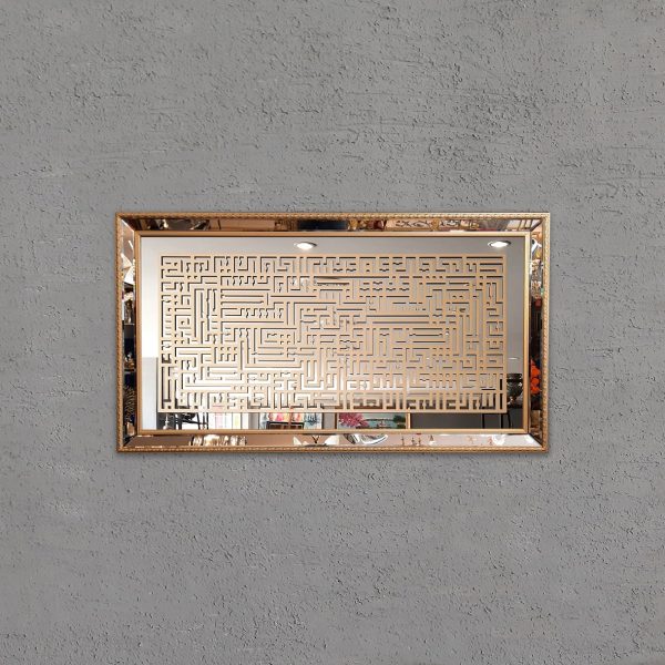 Ayna üzerine ahşap MDF CNC kesim, yapıştırılmıştır.