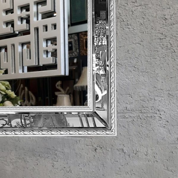 Ayna üzerine ahşap MDF CNC kesim yazı, uygulanmıştır.