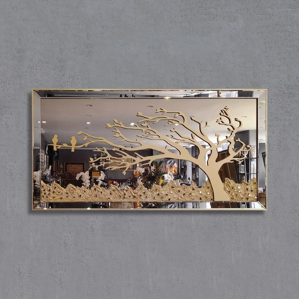 Yerli üretimdir. Ayna üzerine ahşap MDF CNC kesim, yapıştırılmıştır. Kenar çerçeve üzerinde ayna vardır. Tablonun tamamında kullanılan ayna rengi bronzdur. Dünyanın her yerine ahşap kasa içerisinde güvenli ambalaj ile gönderilir.