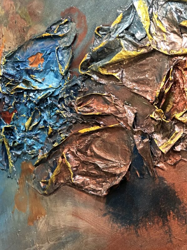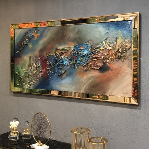 Orjinal yağlı boya tablodur.Yağlı boya, epoksi ve farklı boyalar ile karışık teknik uygulanmıştır.